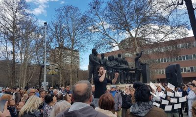 Една од демонстрантките на денешниот протест пред Собранието против законот за употреба на јазиците им говореше на полицајците што беа пред барикадите на законодавниот дом. Таа...