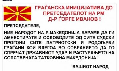 Горан Ангелов, лицето кое упадна со толпата во Собранието, по што беа повредени пратеници и претставници на медиумите, бара за нив амнестија од Ѓорге Иванов. „Граѓанска...