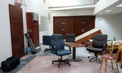 Петти ден по „крвавиот четврток“ во Собранието, сликите сè уште сведочат за насилствата во Законодавниот дом. Она што може да се забележи од ентериерот се откорнати камери...