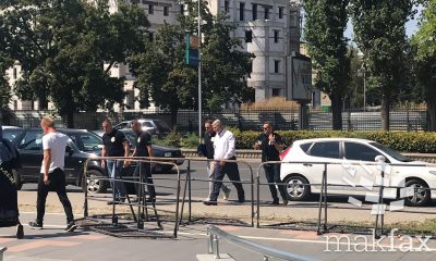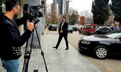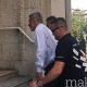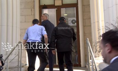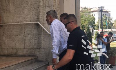 Ексградоначалникот на општина Карпош и лидер на партијата ГРОМ, Стевчо Јакимовски, при излез од старата во новата зграда на Кривичниот суд во придружба на полицијата, покажа...