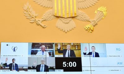Лидерите на четирите најголеми американски технолошки компании – на „Фејсбук“, Марк Цукерберг, на „Амазон“, Џеф Безос, на „Алфабет“, Сандер Пичаи, и на „Епл“, Тим Кук, сведочеа...