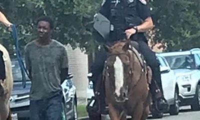 На социјалните мрежи објавени се фотографии од полицајци на коњи кои низ градот водат Афроамериканец врзан со јаже. Инцидентот се случил во саботата во градот Галвстоун....