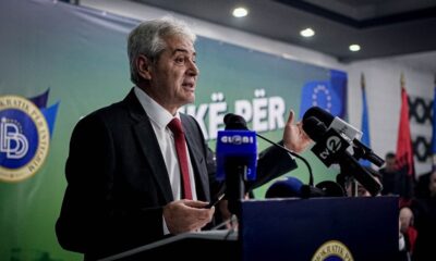 Претседателот на Демократската унија за интеграција, Али Ахмети придружуван од собранискиот спикер Талат Џафери, првиот вицепремиер Артан Груби, министри, заменици министерри, директори како и други соработници...