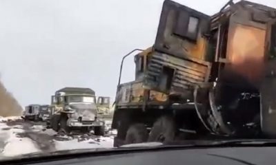 Украинските сили објавија снимка од пат полн со уништени и напуштени руски возила. Снимката трае три минути, а возењето е цело време по каллив и заледен...