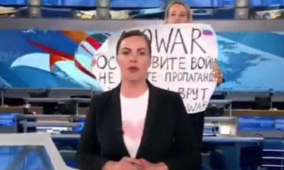 Преносот во живо на руската државна телевизија го прекина една жена мавтајќи со плакат на кој пишуваше „Не на војната, прекинете ја војната“, пишува Би-би-си. На...