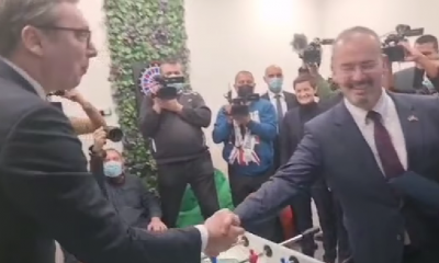 Српскиот претседател Александар Вучиќ одигра „пријателски натпревар“ во фудбал на маса со американскиот амбасадор Ентони Годфри во Државниот центар за податоци во Крагуевац. Видеото го објави...