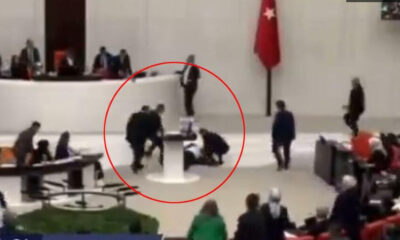Членот на партијата Фелисити (Саадет), Хасан Битмез, падна во близина на говорницата во турскиот парламент додека се обраќаше пред Големото собрание на турското национално собрание за...