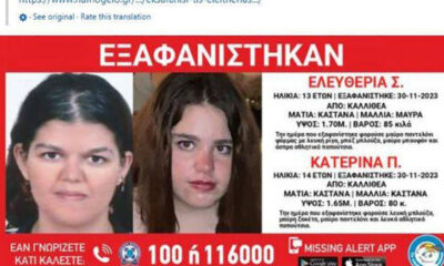 Две тинејџерки, Елефтерија С. (13) и Екатерини П. (14) од Калитеа, Грција, исчезнале вчера попладне откако наводно влегле во такси и се упатиле кон непозната дестинација....