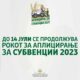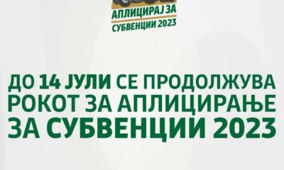 Министерството за земјоделство, шумарство и водостопанство ги информира земјоделците дека до 14 јули 2023 година се продолжува рокот за аплицирање за директни плаќања по програмата за...