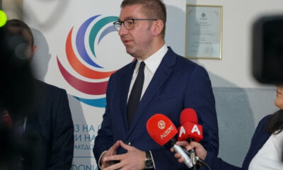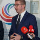 Претседателот на ВМРО-ДПМНЕ, Христијан Мицкоски, по денешната средба во Сојузот на стопанските комори на Македонија, со работна тема „Актуелните економски состојби и предизвиците пред инфраструктурните проекти...