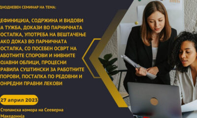Во организација на Стопанската комора, а за потребите на бизнис-заедницата, на 27 април ќе се организира еднодневен семинар на тема: „Дефиниција, содржина и видови тужба, докази...