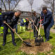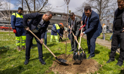 Министерот за надворешни работи, Бујар Османи, заедно со францускиот амбасадор, Сирил Бомгартнер, и градоначалникот на општина Центар, Горан Герасимовски, во Паркот на франкофонијата во Скопје засади...