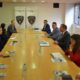Претседателот на Здружението на новинарите на Македонија (ЗНМ), Младен Чадиковски, со претставници од извршната канцеларија на ЗНМ и работната група, кои беа вклучени во изработка на...