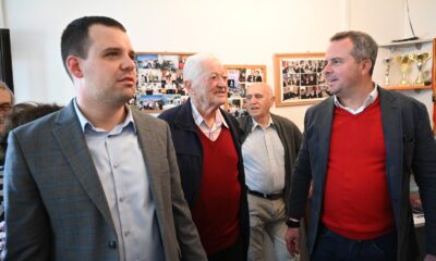 Потпретседателот на СДСМ, Стефан Богоев, заедно со организацискиот секретар на СДСМ, Вангел Андрески, и претседателот на ОО СДСМ Центар и градоначалник на општина центар, Горан Герасимовски,...