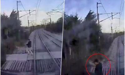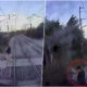 Пешак бил на само неколку сантиметри од удар од воз кој се движел со 112 километри на час додека ги преминувал шините без воопшто да погледне...