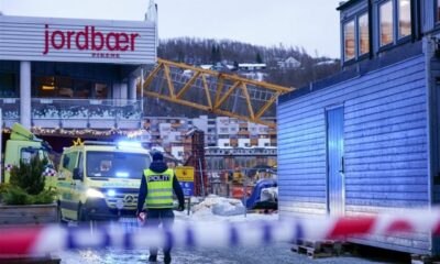 Најмалку едно лице е повредено, а едно се води како исчезнато откако градежен кран се урна врз трговски центар во Норвешка поради силниот ветер. Портпаролот на...