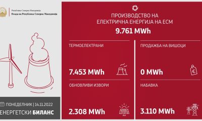 АД ЕСМ вчера произведе 9.761 MWh електрична енергија. Во термоелектраните произведени се 7.453 MWh, а во хидроелектраните и во ветерниот парк во Богданци произведени се 2.308...