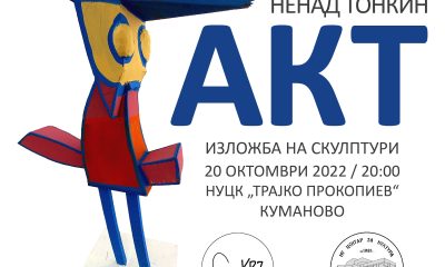 На 20.10.2022 година, четврток, со почеток во 20 часот, во Изложбениот салон на НУ Центар за култура „Трајко Прокопиев“ – Куманово, ќе биде отворена изложба на...
