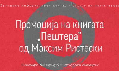 Културно-информативниот центар – Скопје најавува промоција на книгата „Пештера” од Максим Ристески, издадена од издавачката куќа „ИЛИ-ИЛИ” на ден 17.10.2022 година со почеток во 19:19 часот...