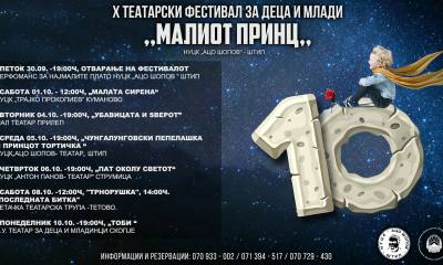 Во НУЦК Ацо Шопов – Штип на 1 октомври почнува 10-тото јубилејно издание на Театарскиот фестивал за деца и млади „Малиот принц“. Годинава се одржува под...