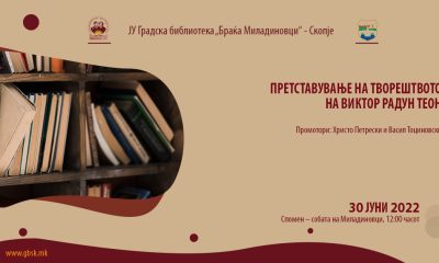 На 30 јуни, во 12 часот, во Градската библиотека „Браќа Миладиновци“ во Скопје, ќе се одржи претставување на творештвото на Виктор Радун Теон. Виктор Радун Теон,...