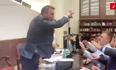 Во Собранието на Северна Македонија дошло до физичка пресметка кога пратеникот на СДСМ-ДУИ, Арбер Адеми, со шолји за кафе и шишиња со вода мавал во пратеници...