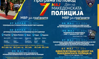 Денеска со почеток во 12:30 часот ќе започне чествувањето на Денот на македонската полиција – 7 Мај коешто годинава е организирано во повеќе градови низ државата....