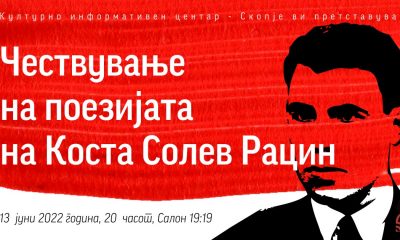 Културно-информативниот центар – Скопје информира дека на 13.6.2022 година со почеток во 20 часот, во Салон 19:19 се организира чествување на поезијата на Коста Солев Рацин....