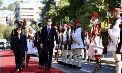 Претседателот на Република Северна Македонија, Стево Пендаровски, денеска пред Претседателската палата во Атина, на официјална церемонија со државни и воени почести, беше пречекан од претседателката на...