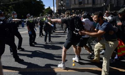 Демонстрантите денеска се судрија со полицијата за време на протестот против заклучувањето кога стотици маскирани луѓе маршираа низ улиците на Мелбурн. Сликите објавени на социјалните мрежи...
