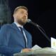 Дејан Митески, кандидат за градоначалник за општина „Аеродром“ од редовите на ВМРО-ДПМНЕ, на денешниот митинг одржан во рамките на изборната кампања, под слоганот „Вистинскиот избор! Твојот...