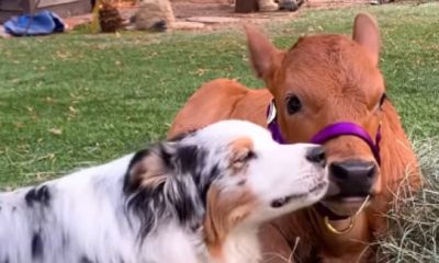Ова мало теле го испуштило својот прв среќен звук со својот пријател куче, а денес, бик тежок над 450 килограми, мора да легне за да можат...