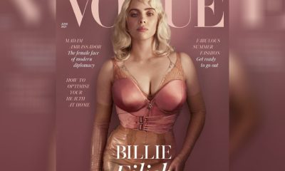 19-годишната мегаѕвезда го лансира својот нов изглед на насловната страница на британски „Вог“ – за кој позира во корсет и здолниште во стил на долна облека....