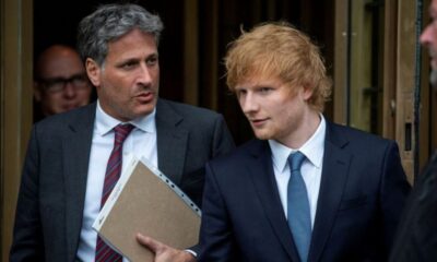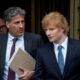 Ед Ширан во четвртокот отсвири акорд од својот хит Thinking Out Loud и отпеа неколку стиха на говорницата за сведоци во федералниот суд на Менхетн за...