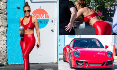 Сликана е кога излегува од вежбалница каде што со часови вежба со партнерот Алекс Родригез, а на себе има хеланки и топ во црвена боја. Џенифер...
