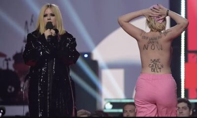 Аврил Лавињ се соочи со топлес-демонстрант за заштита на животната средина на сцената на наградите „Џуно“, канадски еквивалент на „Брит-авордс“. Додека пејачката најавуваше настап на почетокот...