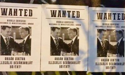 Плакати на кои пишува „Се бара Груевски – Владата е подготвена да прими уште еден осуден криминалец“ излепила опозициската партија во Унгарија, Моментум, на повеќе локации...