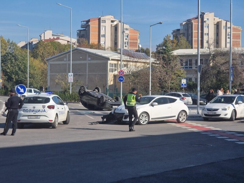 Според фотографиите објавени на социјалните мрежи, во сообраќајната незгода учествувале две возила, а едното завршило превртено на покривот.
