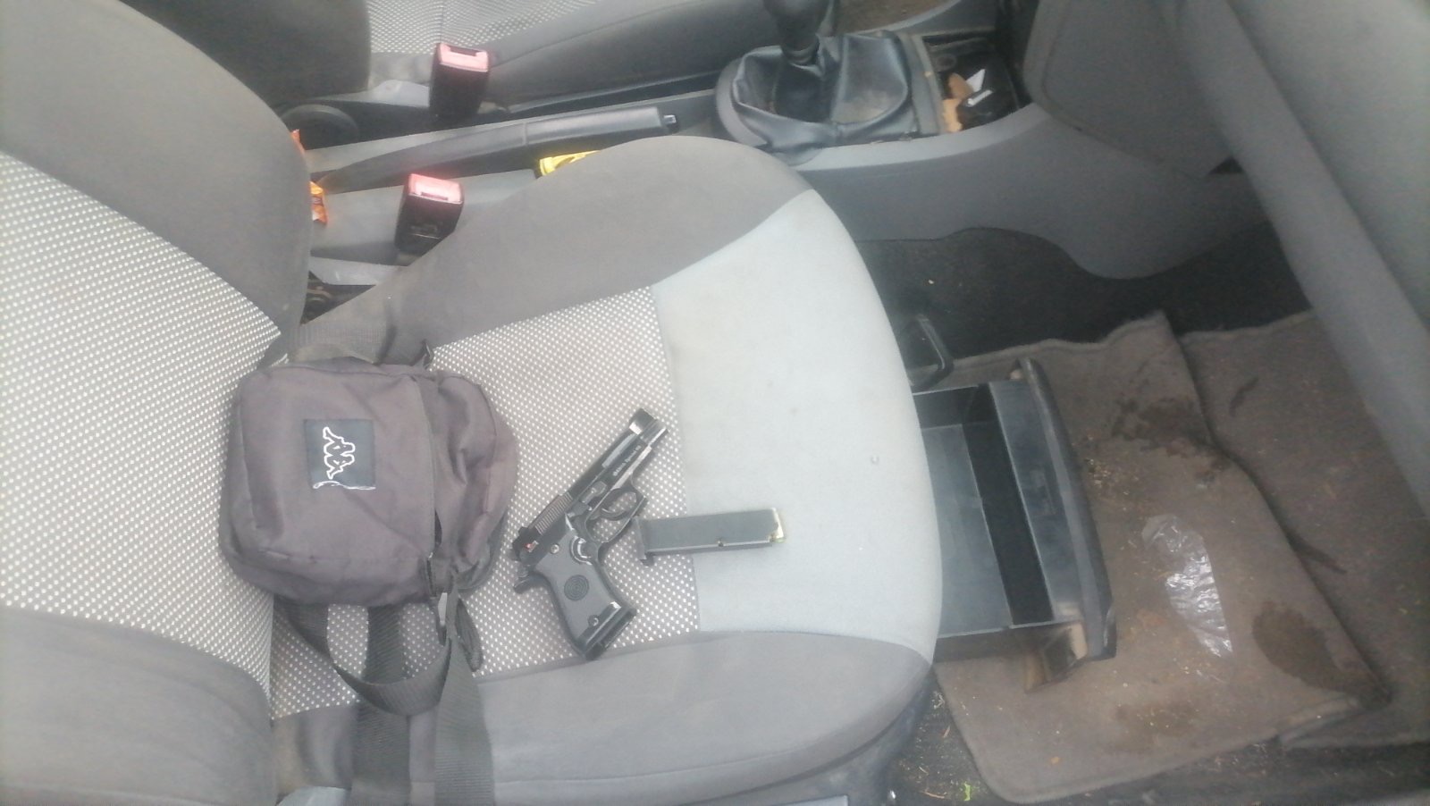 При извршените проверки, во возилото бил пронајден пиштол „Екол“ и рамка со шест куршуми.