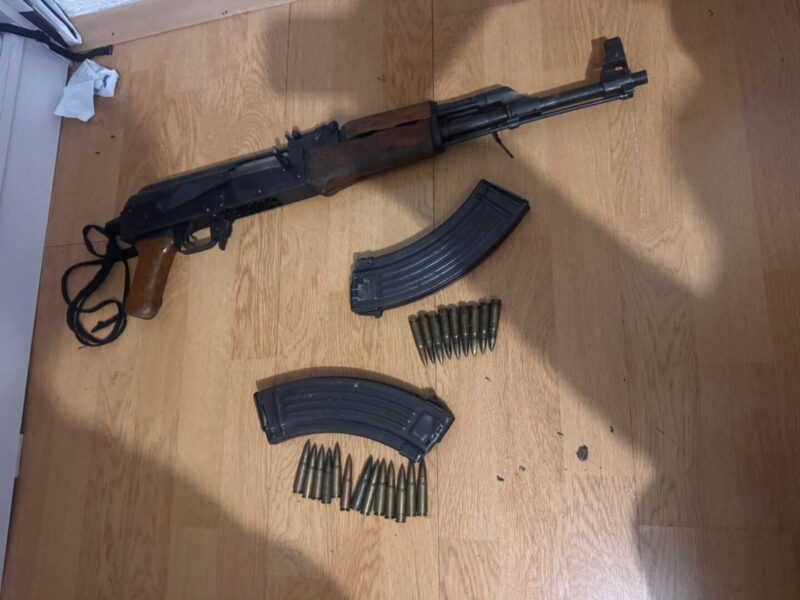 При претрес во неговиот дом во селото Орашје, извршен со судска наредба, пронајдени и одземени се автоматска пушка калибар 7,62 милиметри со две рамки со вкупно 22 куршуми калибар 7,62 милиметри, 78 куршуми непозната марка и калибар, марихуана, дробилка и дигитална вага. При претресот во неговиот дом е затекната И.Д.(34) од Сојузна Република Германија, која е привидена и задржана во полициска станица затоа што го пречекорила туристичкиот престој.