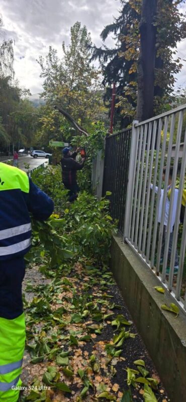 Општина Центар информира дека во моментов екипите на ЈП „Паркинзи на Општина Центар“ и ЈП „Паркови и зеленило“ работат на отстранување на двете паднати дрвја во близина на ООУ „Киро Глигоров“.
