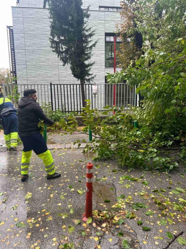 (Фото) Општина Центар: Се отстрануваат паднатите дрвја кај училиштето „Киро Глигоров“