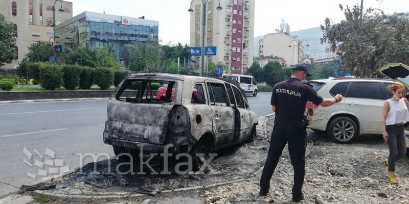 Случајот во полиција го пријавиле жителите на околните згради, кои го забележале возилото како гори.