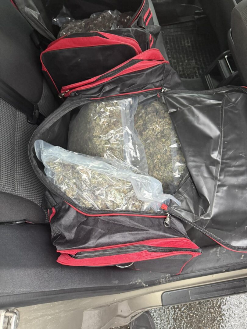 При преглед на неговото возило пронајдени се две патнички торби во кои имало марихуана.