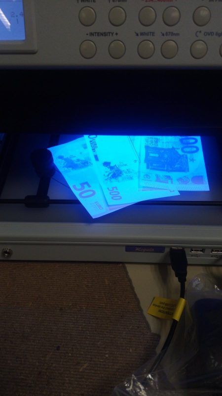 Исто така, од извршената експертиза од страна на Народната банка е констатирано е дека тие претставуваат примероци во рана фаза од изработката на фалсификувани евро банкноти со апоенска вредност од 50, 100, 200 и 500 евра.