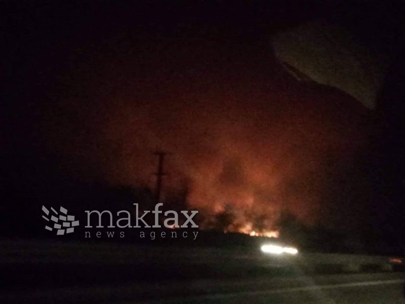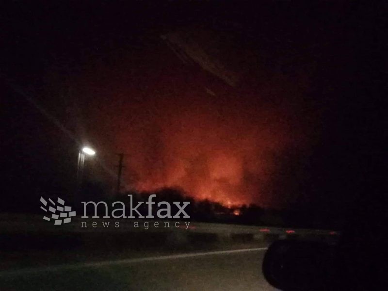 Голем пожар избувна попладнево во близина на Катланово, во скопската општина Петровец. Покрај патот се издигаат пламени јазици и воздухот мириса на чад. Гори сува трева уште од 18 часот.