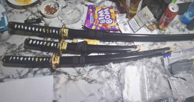 Подоцна, со судска наредба, бил извршен претрес во домот на Б.В. во Виница, при што биле пронајдени и одземени околу 100 семки од растението канабис, две дробилки со остатоци од марихуана, куршуми различен калибар, три сабји, електрошок и други предмети за кои постои сомнение дека потекнуваат од кривично дело.