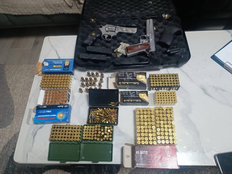 Денеска во 09 часот во село Батинци, скопско, полициски службеници од Единицата за недозволена трговија при СВР Скопје го лишија од слобода 53-годишниот Е.Х. од село Батинци затоа што при извршен претрес во неговиот дом и други простории, по претходна судска наредба, се пронајдени и одземени три пиштоли и 643 куршуми.