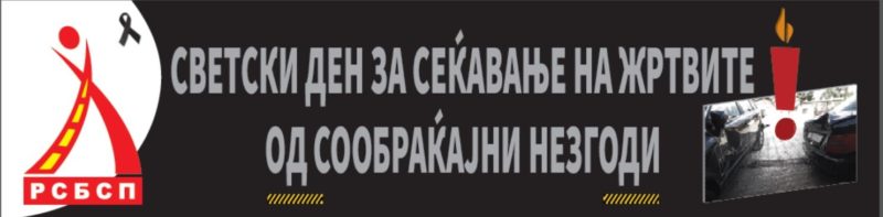 „Да ја намалиме црната статистика на патиштата, да го направиме сообраќајот побезбеден, почнувајки секој од себе, од сопствените грешки и од сопственото однесување во сообраќајот.Време е! Разбуди ја свеста и кажи стоп за смртта на патиштата!, порачуваат од РСБСП по повод Светскиот ден на сеќавање на жртвите од сообраќајни незгоди.