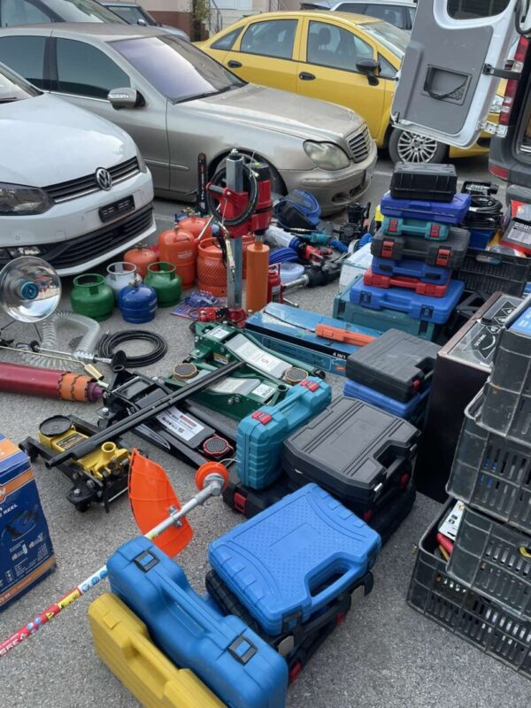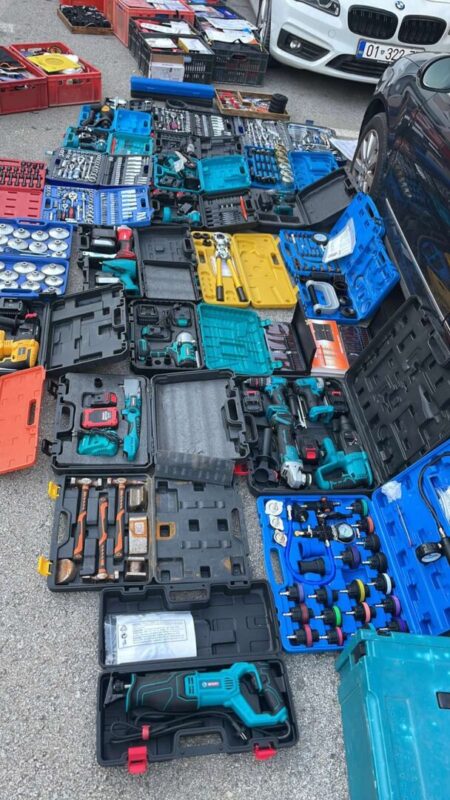 (Фото) Двајца уапсени, запленети 272 парчиња разновидна брендирана стока, 174 парчиња разновиден рачен алат без документација